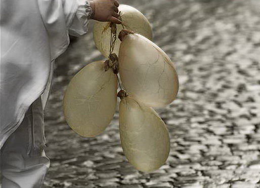 algunos, con vejigas que dan en la cara a la gente, se abren paso.